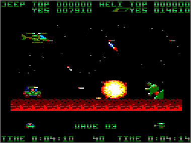 Además, hay contendientes aéreos a reacción, de modo que no es infrecuente que luchemos contra rapidísimos cazas (difíciles de abatir y esquivar) y que, de vez en cuando, sobrevuelen la pantalla enormes misiles. Lograr sobrevivir a estos últimos es tan sólo cuestión de suerte o memoria.