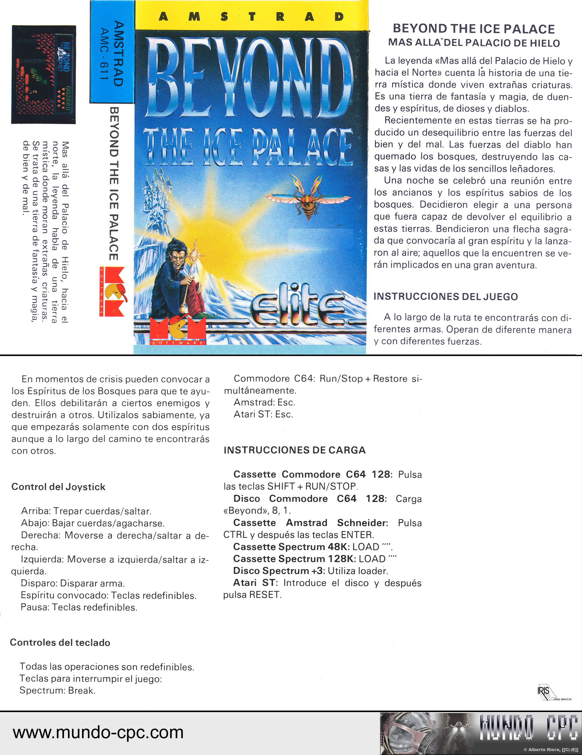 beyond_gif En 1988 la fama de Elite, al menos en lo tocante a los usuarios de Amstrad, andaba por los suelos. Durante 1986 se habían encargado de realizar la conversión a nuestro ordenador del genial Ghosts´n Goblins y el resultado final resultó totalmente decepcionante, algo que los propietarios de un CPC nunca perdonamos (de hecho, todavía hay quien querría linchar al equipo de desarrollo por esta gran labor). El caso es que, como ya habían visto las orejas al lobo y tenían que sacar un nuevo juego para el sistema, decidieron enmendar con él sus antiguos errores. De esta forma, nació Beyond the Ice Palace, título que, para algunos, es un clon del Ghosts´n Goblins que nunca pudimos disfrutar debidamente (aunque yo diría que ambos programas no se parecen en nada).
